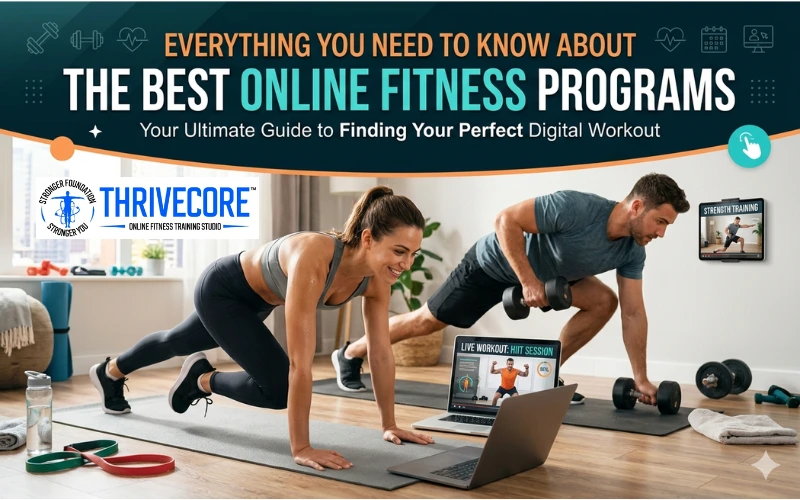 Having a professional fitness coach in online training programs is essential. They provide expert guidance on proper form, workout structure, and progression. They make personalized plans, offer modifications for all levels, and keep you accountable by checking in regularly. Unlike regular programs which only consist of pre-recorded videos and generic plans, coaches at Thrivecore analyze your progress, adjust routines to ensure safety. You can experience their expertise with the comfort of your own home.