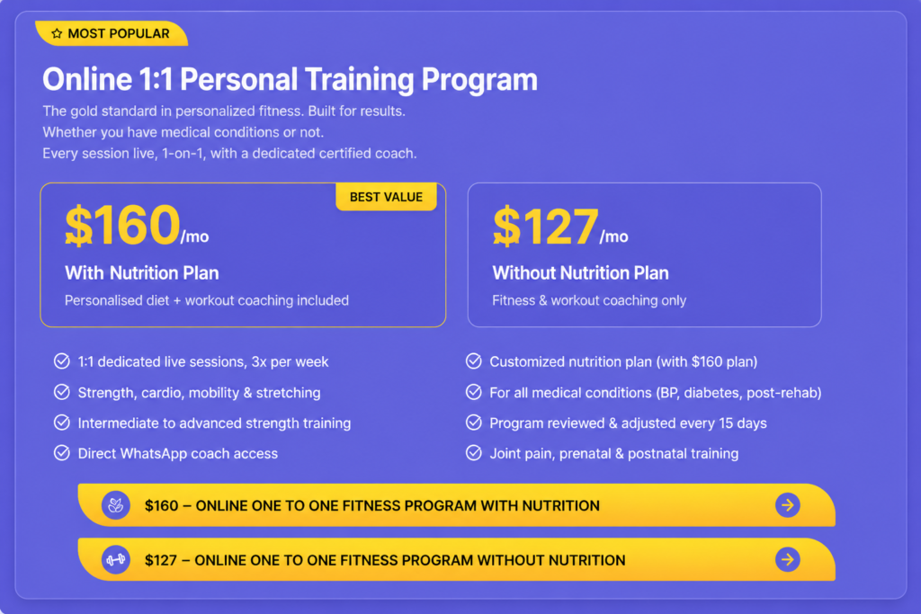 Online one-on-one coaching produces higher adherence rates over six months compared to self-directed gym programs. This is based on reviews of digital fitness interventions.